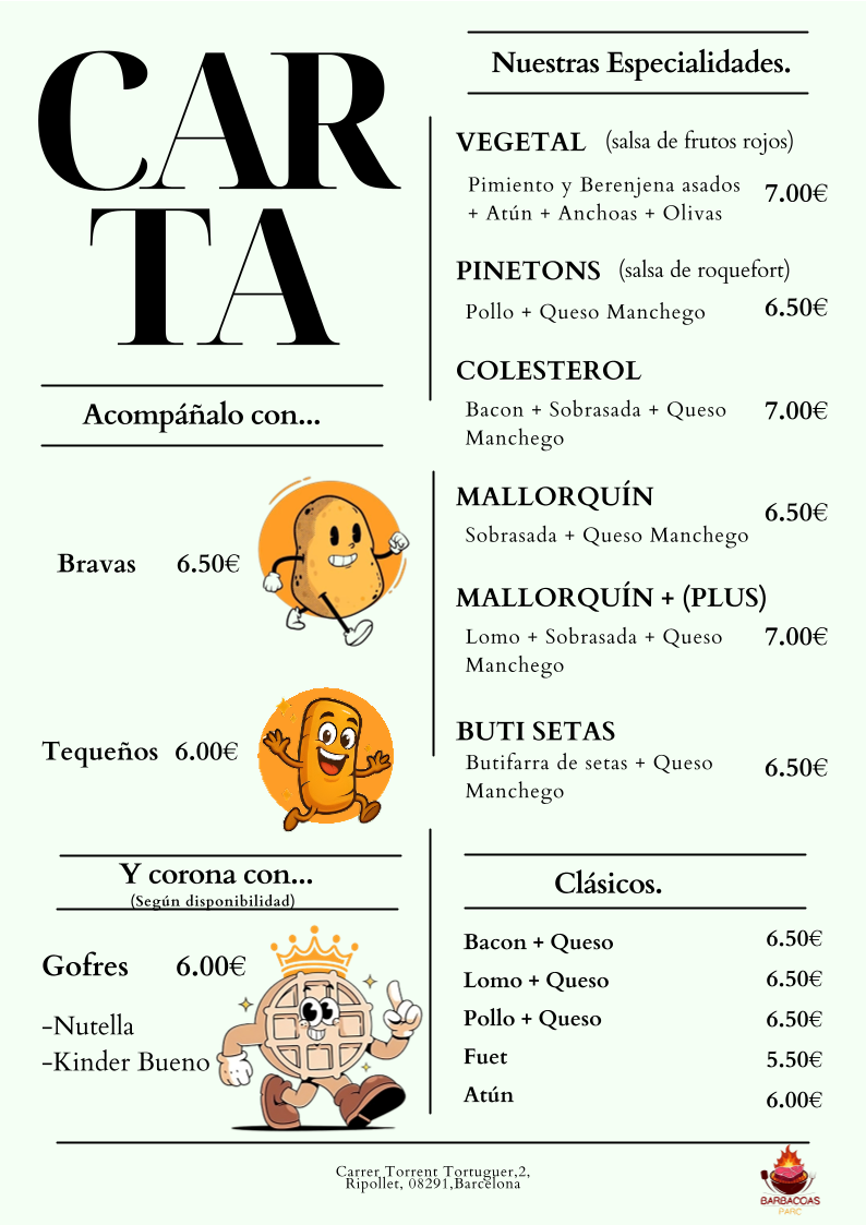 The menu offers a variety of options focused on barbecue and café-style dining. Patrons can expect items suitable for shared meals centered around grilling, with particular highlights including traditional Calçots and vegetable rice dishes. The menu supports a casual, group-oriented dining experience where guests typically prepare and cook their own food using provided facilities such as charcoal, firewood, and grills.